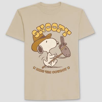 Peanuts Snoopy Cowboy Roundneck T Shirt, Men, XL, Tan