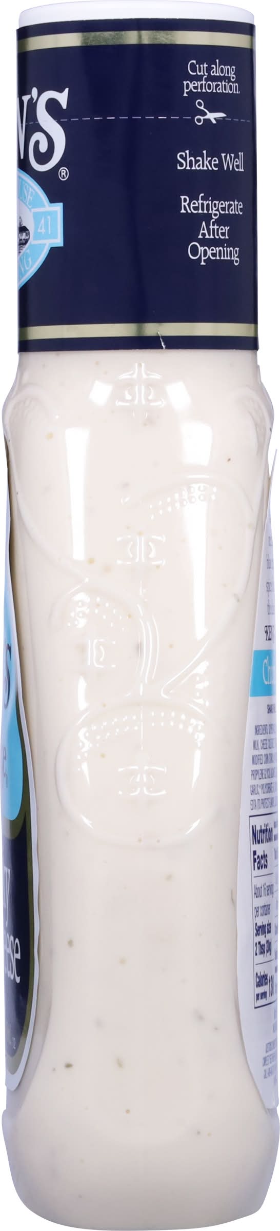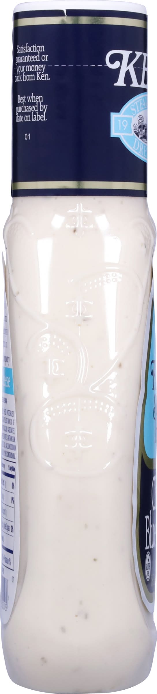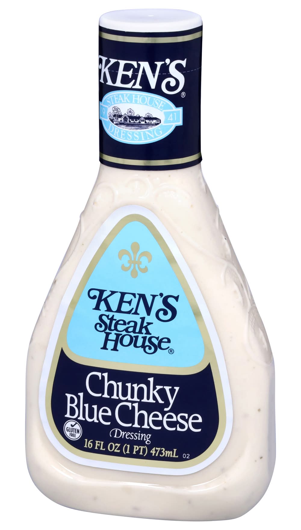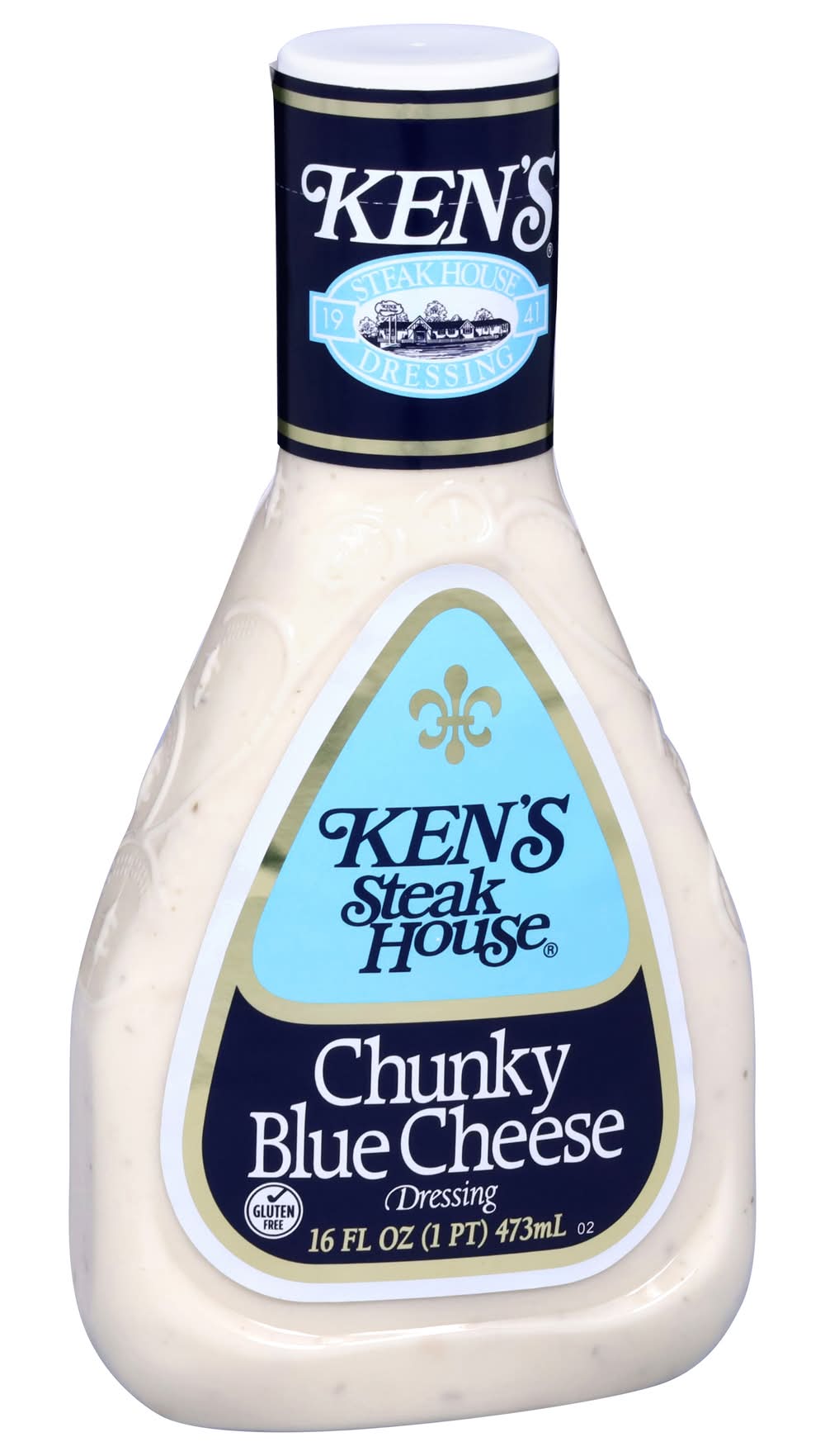 Ken's Steak House Chunky Blue Cheese Dressing has a big, classic blue cheese taste that could only come from big chunks of real blue cheese. A must for every fridge. Pour it over a wedge of cold lettuce for a salad course that can't be beat. Spread it on sandwiches. Dress up a burger. Use it as a gluten-free dip for fresh, crunchy veggies. Making wings? Be sure to get an extra bottle. Shake well before use and refrigerate after opening. Ken's Foods, Inc., Marlborough, MA, 01752