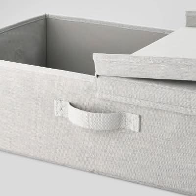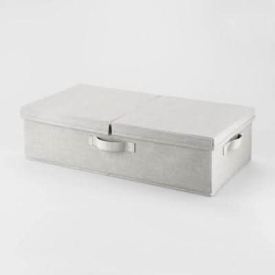 Keep extra linens, out-of-season clothing and more neatly stowed out of sight in this convenient Underbed Fabric Bin with Lid from Brightroom™. Featuring a simple rectangular design that's conveniently sized to slide under a bed or place on a Brightroom stackable shelf, this fabric box with lid is a great way to keep your home organized while keeping the items inside free of dust and debris. The hinged lid design means you can easily open one half at a time, and built-in fabric handles on both the short and long sides of the rectangle make it easy to slide out from its storage spot. Brightroom™ started with a simple truth: When you’ve got it together, you feel better. Our versatile designs reveal the possibility in every closet, cupboard and drawer, and work together to create brilliant ways to organize your every day. Color: Light grey