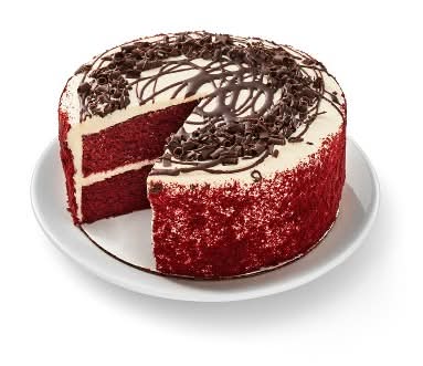 Any occasion birthdays, anniversaries or just because will be a little sweeter when you serve. This decadent cake is made up of two layers of rich, moist red velvet cake that's covered with delicious cream cheese frosting and topped with a chocolate drizzle for delectable flavor in every bite. The cake serves approximately 12, making it a great pick for treating a group to a sweet dessert.