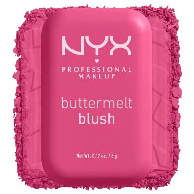 Butta blush. Butta boom! NYX Professional Makeup Buttermelt Blush comes in 12 highly pigmented, buttalicious shades that blends like powder & glides like butta, in soft matte and glowy finishes. Infused with mango butter, almond butter, & shea butter, it doesn't get any butta than this. Fade & transfer resistant. Up to 12 hours wear. Vegan and cruelty free. How To Use: Need a blush hack? Here's how to apply blush for a butta blend. Lightly tap your brush into the pan to pick up pigment, then swirl the brush on the high points of your cheek, around the temples, and even across the nose for a warm flush of blush. Layer over NYX Professional Makeup Buttermelt Bronzer for a warm natural sun-soaked bronzed look and make it butta together! Color: Butta with time
