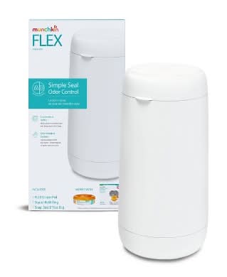 Having a baby has its own set of challenges – lingering diaper odors shouldn’t be one of them! Rethink the stink with the FLEX Diaper Pail from Munchkin. Minimal design meets maximum odor control in this compact nursery must-have, which flexes to fit into any space. No more funky surprises when opening the lid; FLEX uses our patent pending Simple Seal odor control technology to lock in nasty smells. For one-handed convenience, just tap lid to automatically open, drop in a dirty diaper, and lock odors away. This small but mighty disposal system holds up to 50 newborn diapers and conveniently works with Arm & Hammer Refill Rings, Snap, Seal & Toss bags, up & up rings, and most refill rings. Take a deep breath and let FLEX do the heavy lifting!