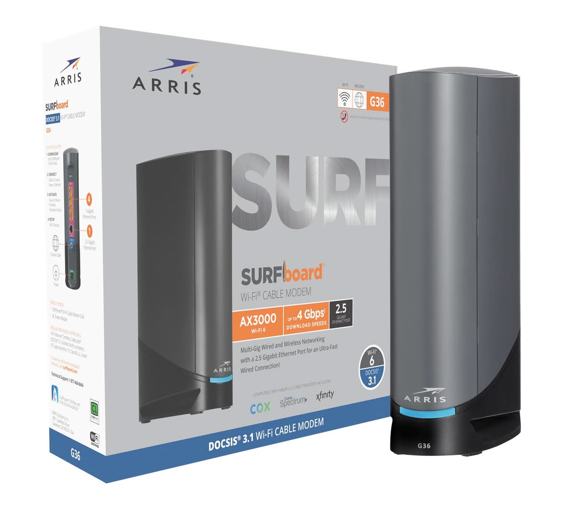 Arris Surfboard Gigabit Wi-Fi 6 Cable Modem With 2.5 Gbps Ethernet Port G36 Docsis 3.1