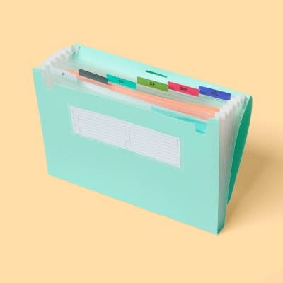 Easily manage your documents by organizing them in one spot with the 7-Pocket Expanding File Folder. This teal file folder comes with seven pockets and extended sides and bottom to provide ample space for your letter-size papers. Made with plastic, this file folder has a non-pronged fastener to help keep the contents neatly contained. Plus, it has a space to label the folder so you can tell at a glance what you've stored inside. Color: Green