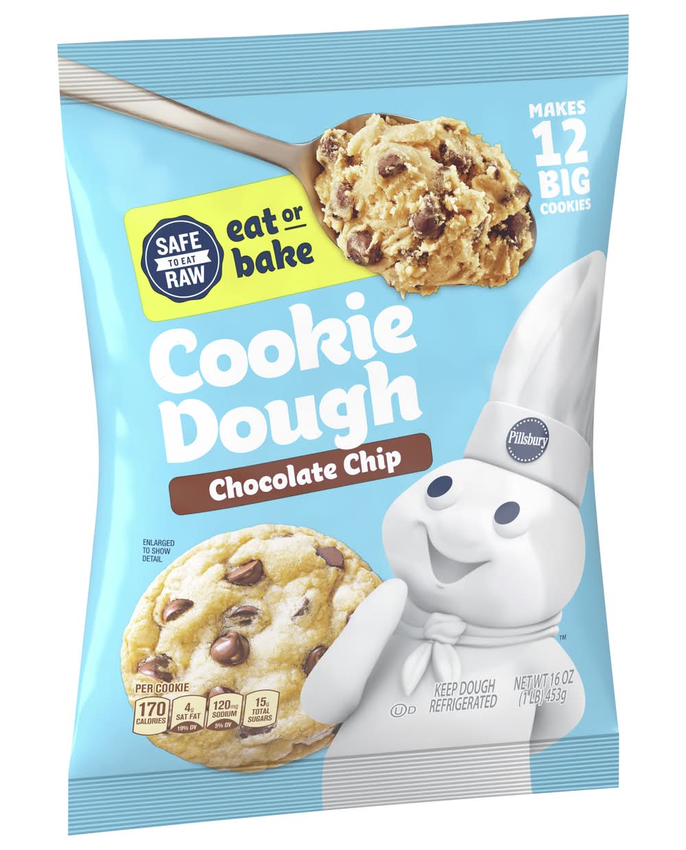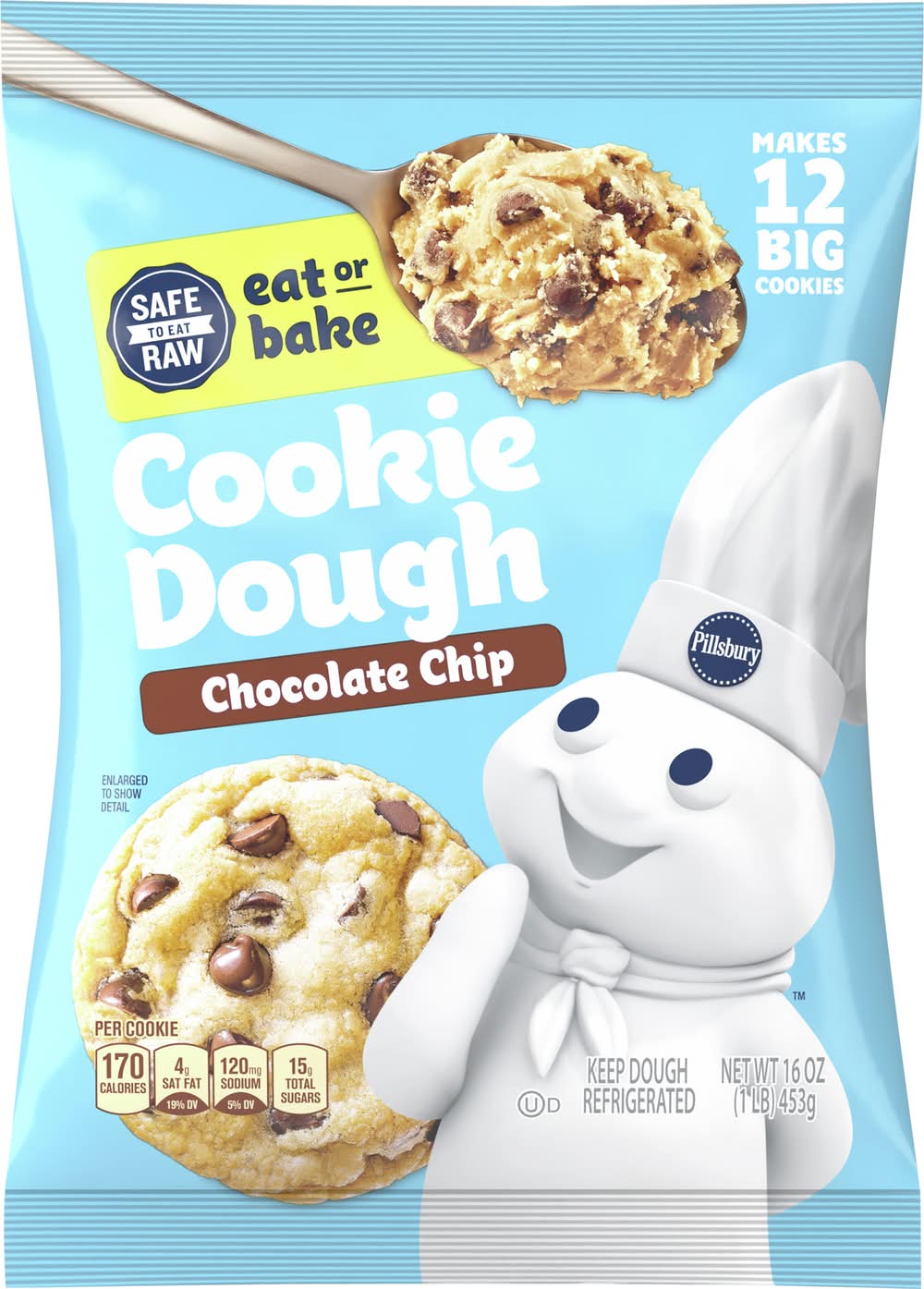 Pillsbury Eat or Bake Refrigerated Cookie Dough, Chocolate Chip (16 oz, 12 ct)