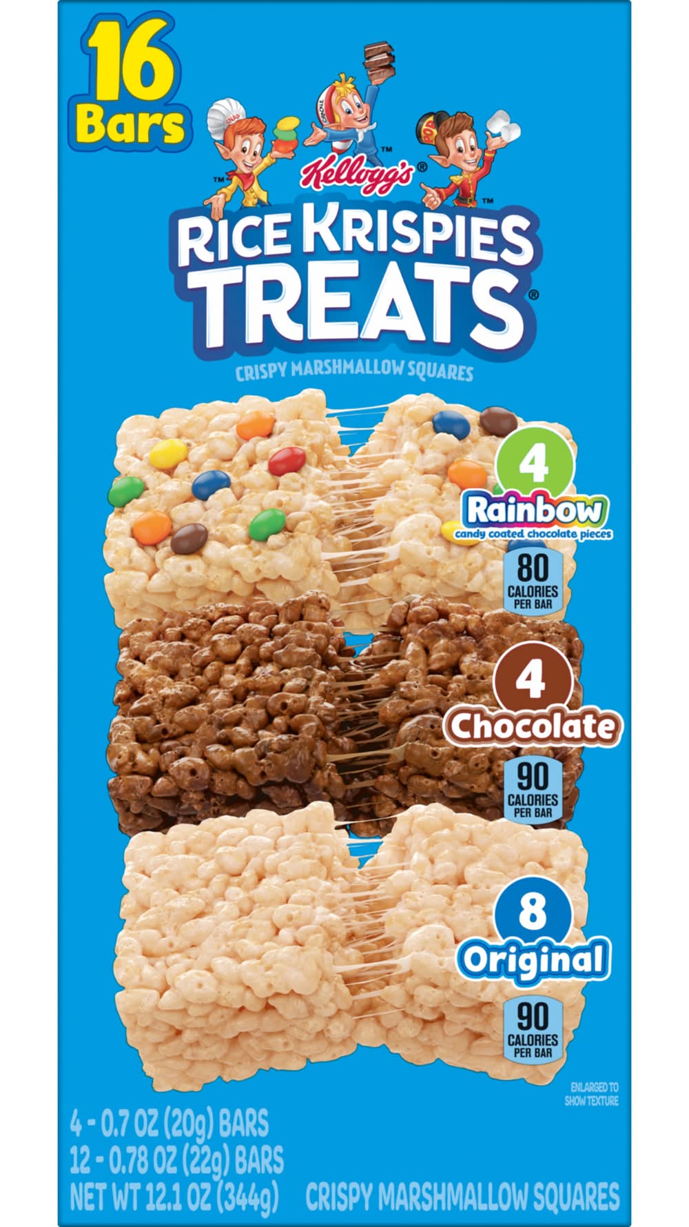 Kellogg's Rice Krispies Treats Crispy Marshmallow Squares Variety pack, Rainbow-Chocolate (12.1 oz, 16 ct)