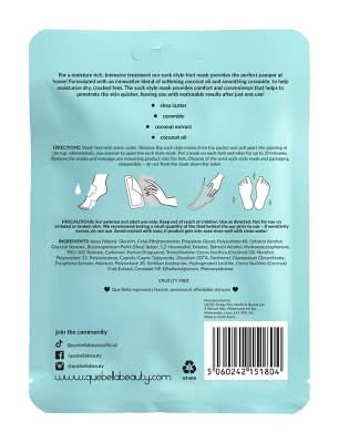Wash feet with warm water. remove the sock style masks from the packet and pull apart the opening at the top. alternatively, use scissors to open the sock style mask. put a mask on each foot and relax for up to 20 minutes. remove the masks and massage any remaining product into the feet. dispose of the used sock style mask and packaging responsibly – do not flush the mask down the toilet.