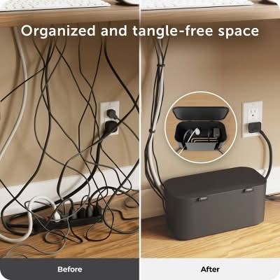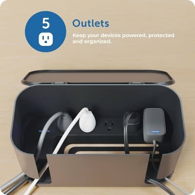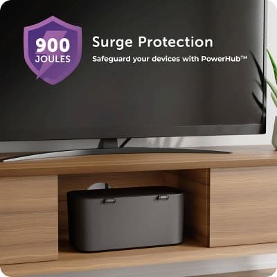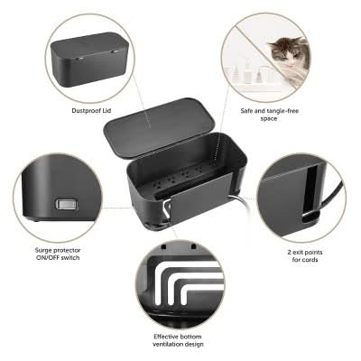 The Cable Management Box by Globe Electric seamlessly combines functionality and style to enhance your living and workspaces. Featuring the ability to convert one socket into five grounded outlets, this black power box provides a convenient solution for powering multiple devices in one area. With surge protection up to 900 joules, it ensures the safety of your valuable electronics from unexpected power surges. The 6-foot cord allows for flexible and discreet placement, easily hiding behind or under your desk for a seamless and organized look, regardless of your wall outlet's location. Organize your space effortlessly by eliminating the unsightly tangle of wires, today! Color: Black