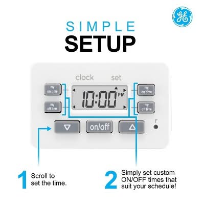 Simplify your routine with the GE myTouchSmart Indoor Plug-in Single-Outlet Digital Timer. The easy-to-use timer is perfect for lamps, seasonal lighting, holiday décor, small appliances and more. For increased versatility, it is compatible with LED, CFL and incandescent lights, and a compact design with side-access outlet fits in tight spaces. Whether you’re away for a few hours or a few weeks, the unique timer is a quick way to deter crime by giving your home a lived-in appearance. Two custom my on/my off settings are easy to program and accommodate varied schedules. The timer turns any indoor, outlet into a timed, polarized outlet, and features a convenient override switch to prevent your settings from cycling when not needed. A built-in backup battery stores settings when power is disconnected. The side-access design directs cords along walls to allow close placement of furniture or use in other tight spaces. Set your life to ready with the GE myTouchSmart Indoor Plug-in Single-Outlet Digital Timer.