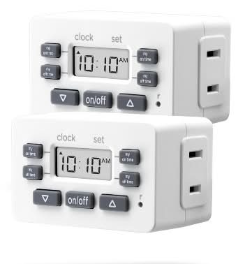 GE myTouchSmart Simple Set Digital Bar Timer 1-Polarized Outlet 2pk: Indoor Light Timer Plug, Push Button, White, No Assembly
