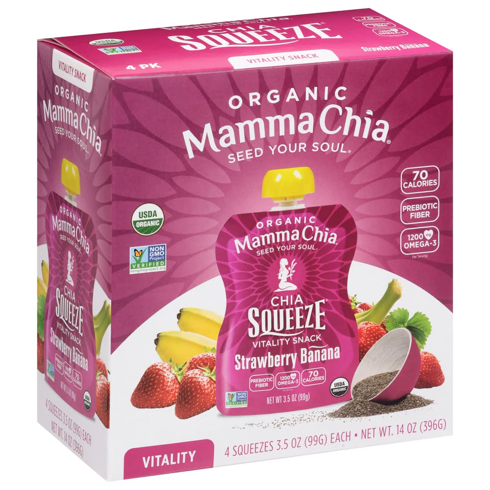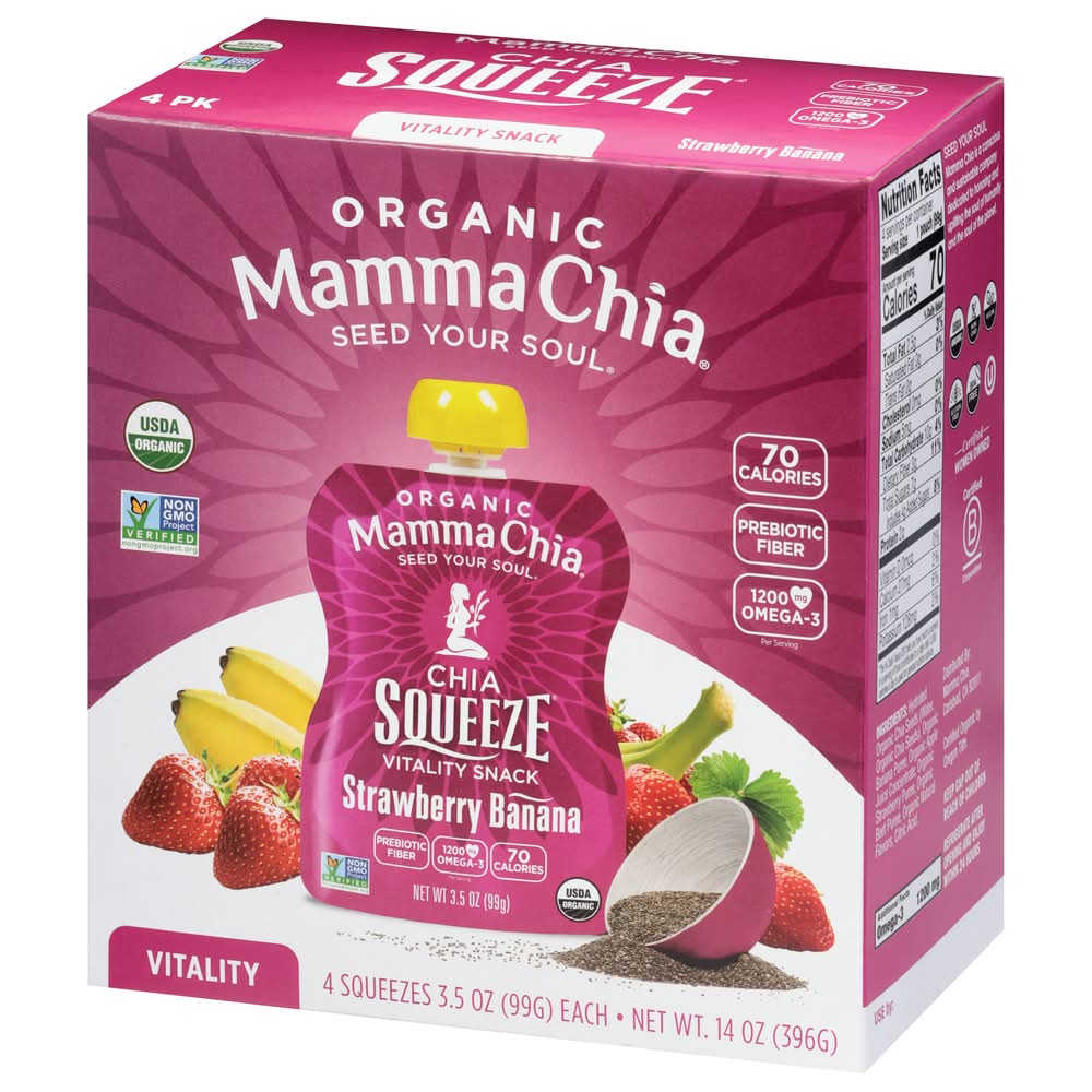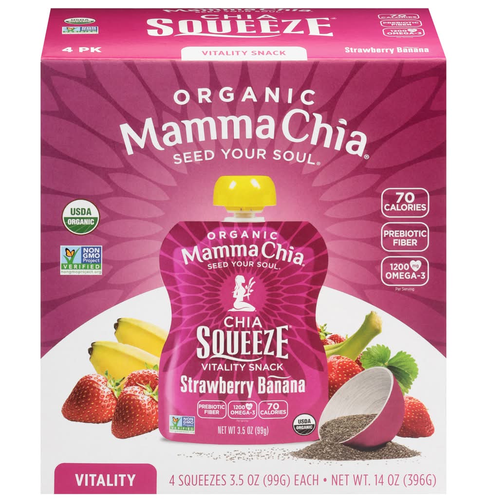 Mamma Chia Organic Chia Squeeze Vitality Snack, Strawberry-Banana (4 x 3.5 oz)