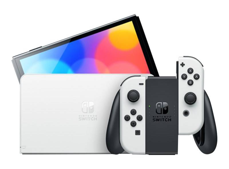 Play at home or on the go with a vibrant screen   Play on your TV at home or pick up and play in handheld mode on a vivid 7-inch screen. The system also features 64 GB of internal storage, enhanced audio, a wide, adjustable stand, and a dock with a wired LAN port.   Enjoy three modes in one system TV mode: Connect your system to the TV using the included dock to enjoy a traditional gaming experience in HD.   Handheld mode: Bring your games on your next travel adventure and enjoy playing that makes colors pop.   Tabletop mode: Use the wide, adjustable stand to position the screen and detach the included Joy- controllers to enjoy game time even without a TV.   Games for the whole family Systems are the home of games like Super Mario Bros   Connect and play together Share the smiles! You can buddy up on one system, play online, or even link your systems together wherever you are for multiplayer favorites like the Super Smash Bros. Ultimate game.   Joy-Con controllers included The two included Joy-Con controllers let you play multiplayer games right out of the box—just pass one to a friend and go.   Attach them to the screen for handheld mode or use both as a single controller when you play on the big screen. Plus, built-in motion controls really put you in the game in titles like Super Mario Party Color: White