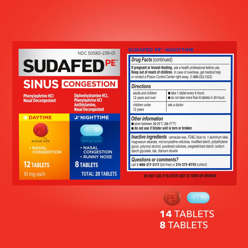 Sudafed PE Daytime & Nighttime Sinus Congestion Tablets 10 mg (20 ct)