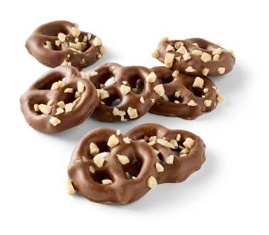 Miniature pretzel twists are coated in creamy milk chocolate and tasty toffee for an irresistible combo of salty and sweet. Delicious right out of the bag, they also make a great pairing with ice cream or a glass of milk. Flavor: Milk chocolate-toffee