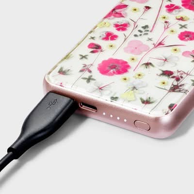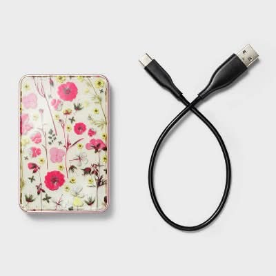 Charge your devices on the go with the 5000mAh Power Bank from heyday in a Multi Floral design. This lightweight power bank not only comes with a battery capacity of 5000 mAh but also allows you to charge two devices simultaneously. With quick charge capabilities and a rechargeable battery, this power bank comes complete with a USB cord for added convenience. heyday: Let your style speak volumes.
