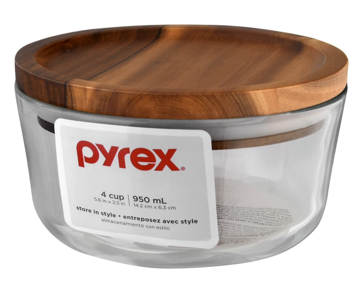 Pyrex Glass Food Storage Container With Wood Lid, 5.6x2.5 in (4 ct)