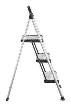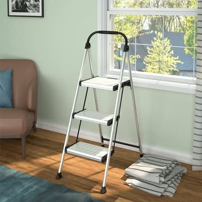 Three is ideal for any task around the house. Whether it's reaching that high cabinet, changing a light bulb or washing the windows, our products make it easier to get any job done. This lightweight step stool provides security and stability to any job with large climbing steps. The contemporary design fits the décor for many of today's kitchens. Color: Gray-black