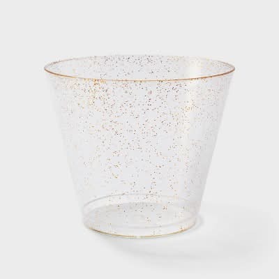 Serve up cold refreshments to your guests without worrying about broken glass with this of Plastic Stemless Wine Glasses from Spritz. Made from plastic in a gold hue with allover glitter accents for an elegant touch, these stemless wine glasses offer worry-free use. Their disposable design makes them great for parties, and the count of 20 helps you serve large numbers of guests. Color: Gold