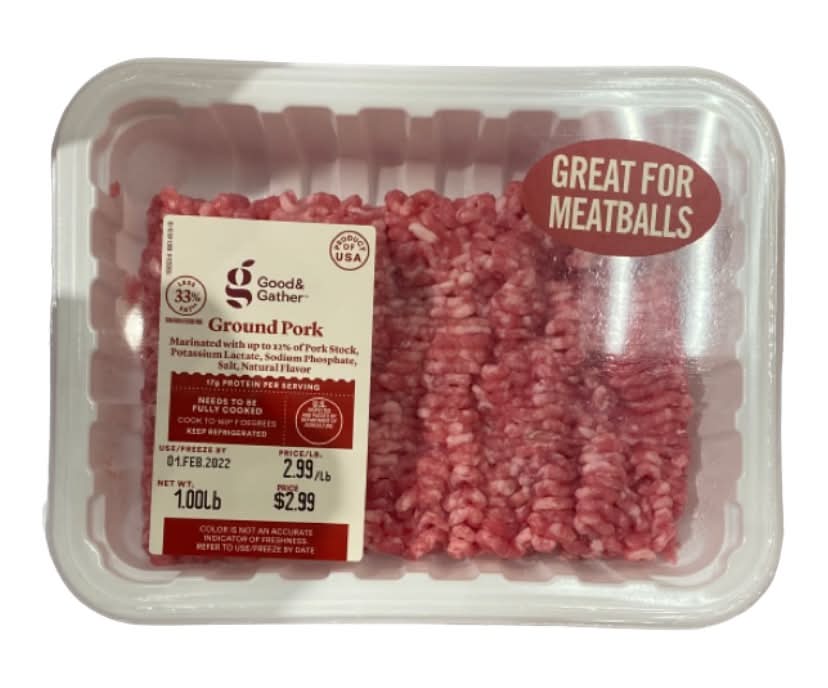 Add some variety to your dinnertime routine with a package of Ground Pork from Good & Gather™. With 21 grams of protein per serving, this ground pork makes it easy to achieve your daily nutritional goals, and the mild flavor melds beautifully with seasoning, sauces and marinades for versatile use. Simply cook it with mushrooms, shredded carrot, sliced peppers, onions and bok choy for a super fast stir fry that's sure to hit the spot, or mix it into sloppy joes, tacos, meatballs and more for a tasty beef alternative your family will love. Every product that carries the Good & Gather™ name starts with quality ingredients that deliver great taste, making it easier for you and your family to eat well, every day. We promise you’ll love each bite, or your money back. All Good & Gather products are made without artificial flavors, synthetic colors, artificial sweeteners, and high-fructose corn syrup. Some are specially formulated while others never contained these ingredients.