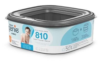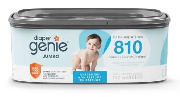 The Diaper Genie Jumbo Square Refill offers 60 ft of refill that can hold up to 810 newborn-sized diapers, significantly reducing the need for frequent refill changes and purchases. This refill is made from durable multi-layer film featuring odor-locking barrier technology, effectively containing odors and ensuring your nursery remains fresh. Compatible with Diaper Genie Compact Pail, Select Pail, and Classic Pail.