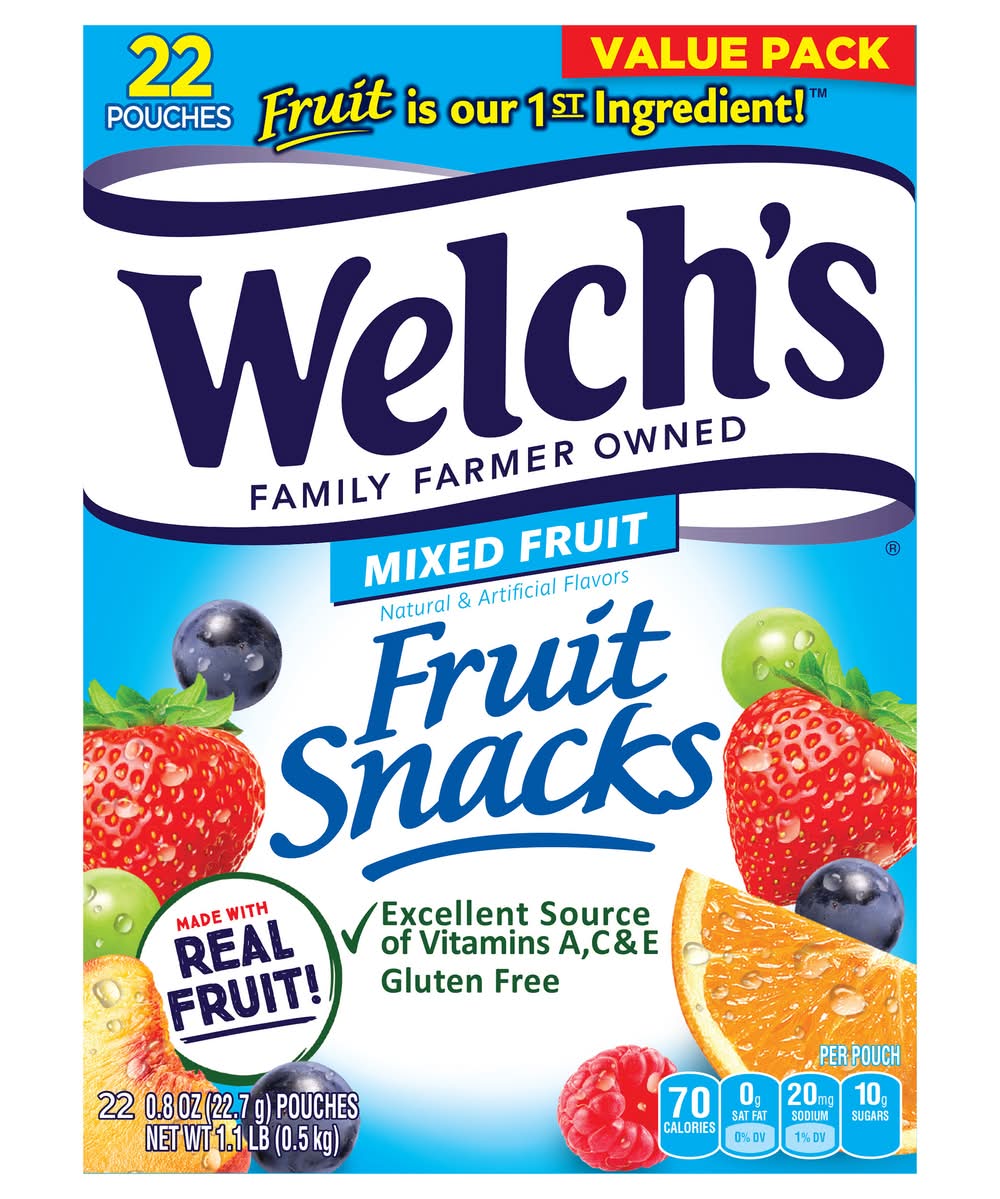 Welch's Fruit Snack Pouches Value pack, Mixed Fruit (22 x 0.8 oz)