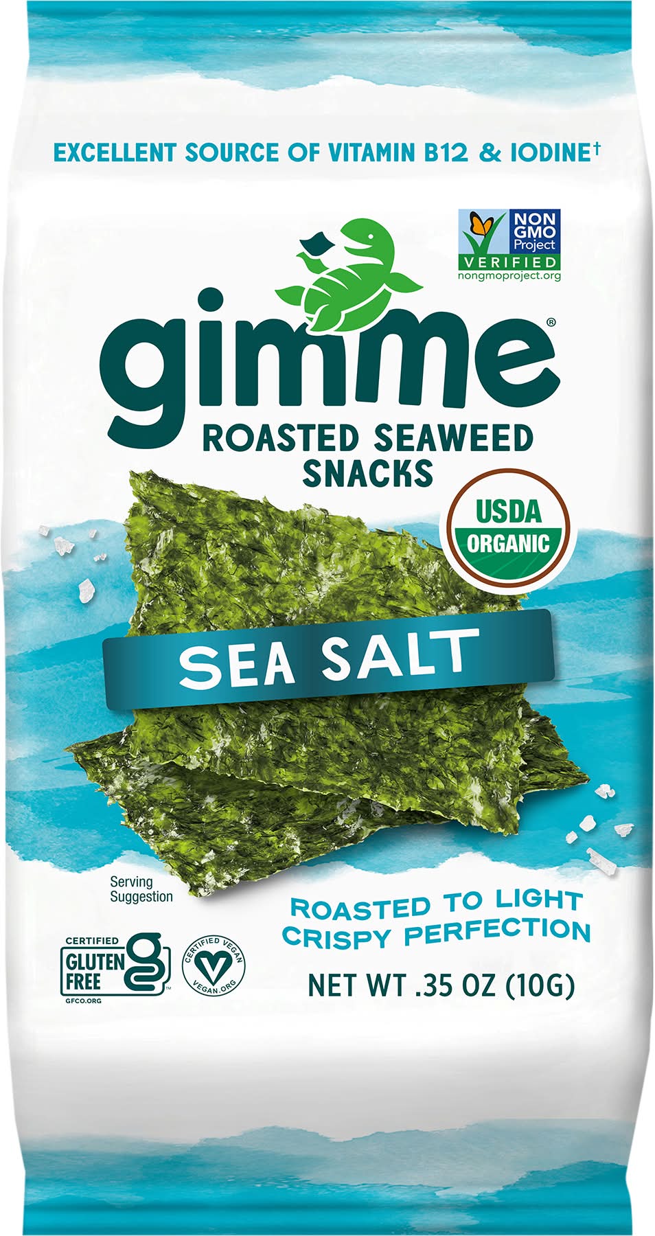 Seaweed Snacks, Roasted, Sea Salt • gimMe Health Foods Inc., San Rafael, CA, 94901 • Packaging: Reusable