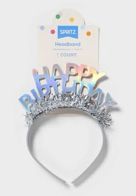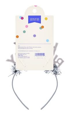 The queen of the party deserves a crown, and the GOH Headband Party Tiara is the perfect pick. This tiara's silver lettering proudly pronounces, 'HAPPY BIRTHDAY' framed with sparkly foil fringe that'll look adorable on the birthday child. Lightweight and comfortable, this tiara's headband style helps it stay in place for those important photo ops! Color: Silver