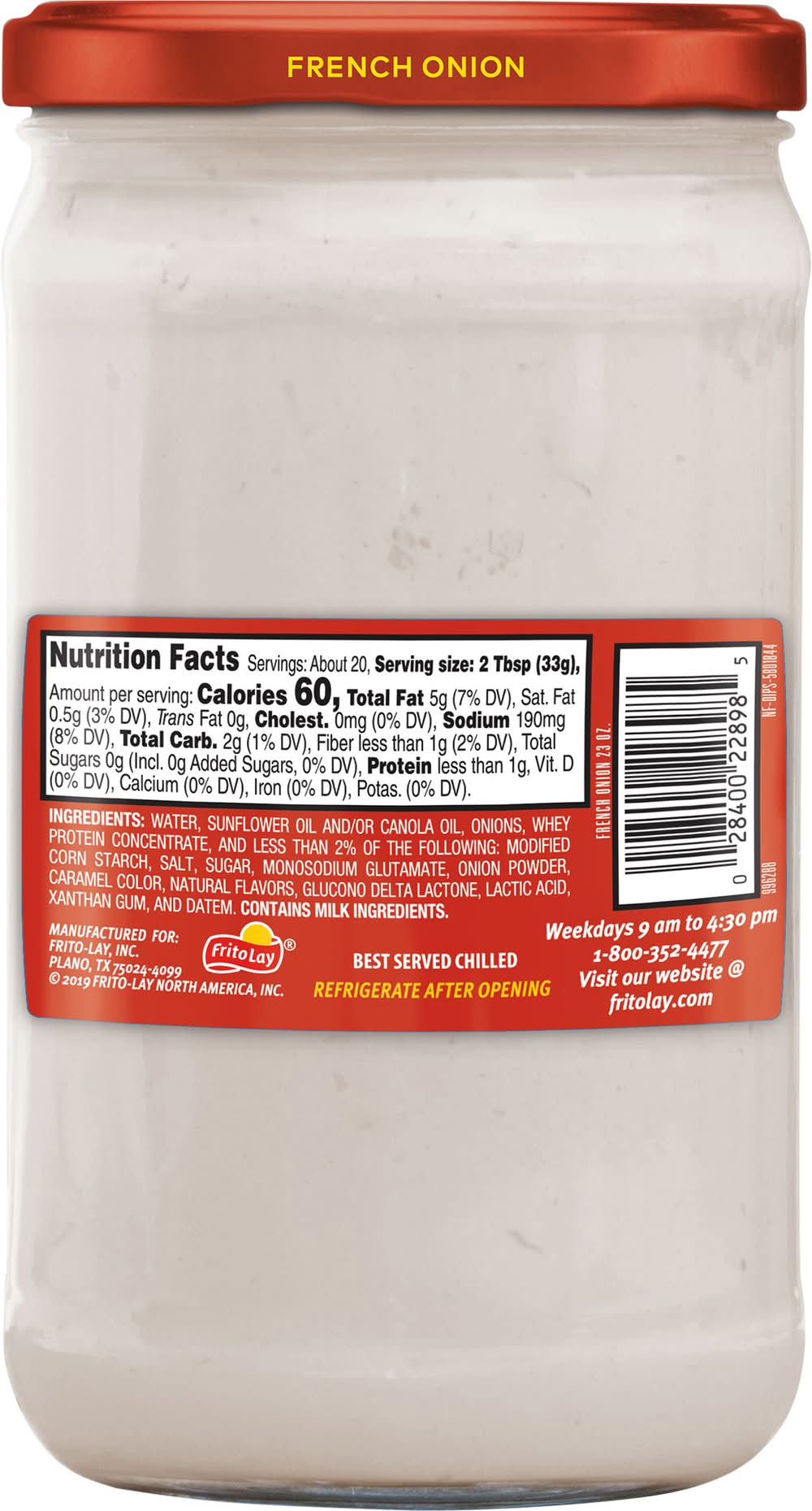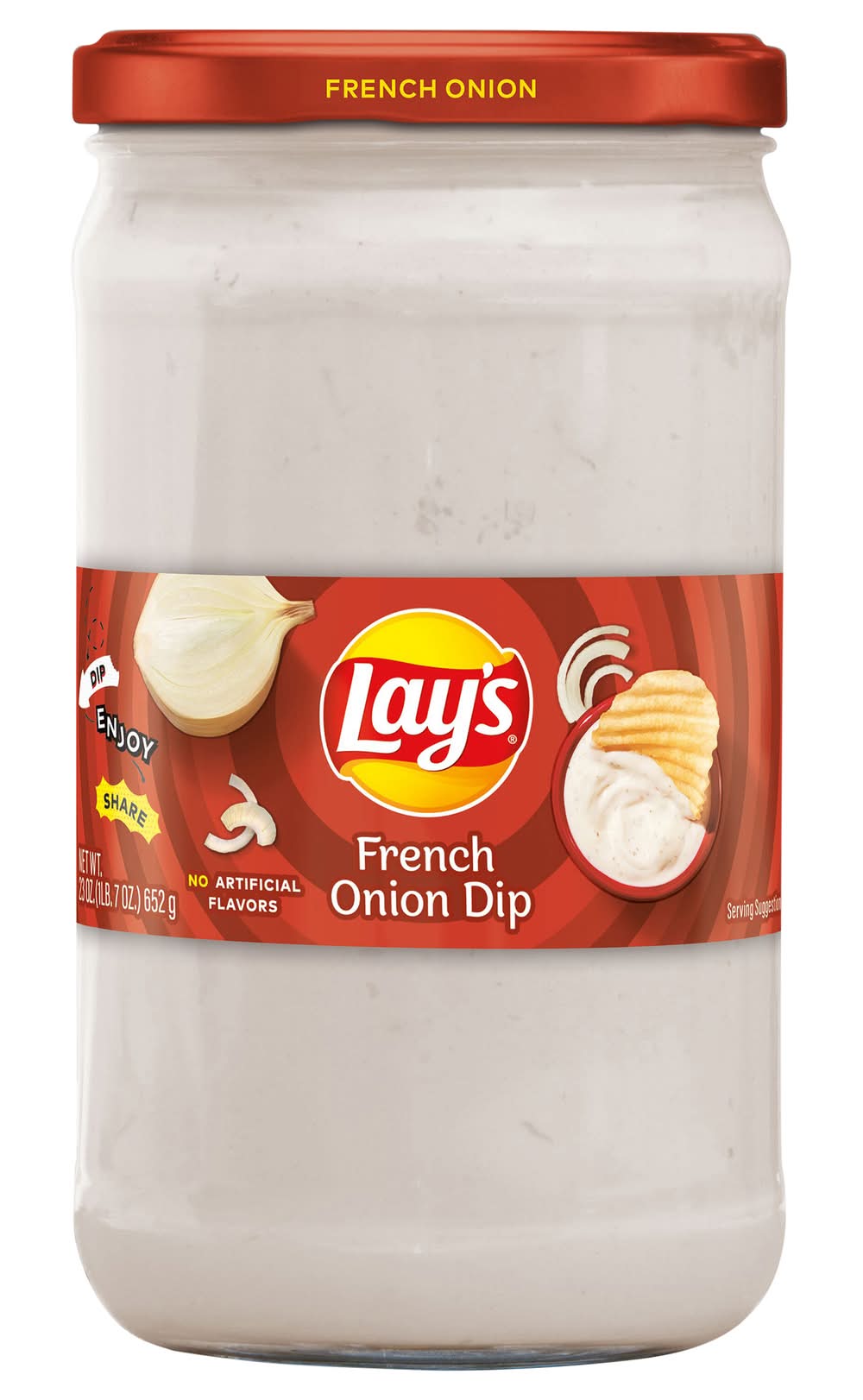 Delicious, crowd pleasing and convenient - it can't get much better than Lay's chips and dips! From entertaining friends to relaxing at home and everything in between, our perfectly blended salsas and great-tasting dips are always a hit. Mix and match them to discover your own perfect pairing! This creamy, savory French Onion dip pairs perfectly with chips, crackers, and veggies. It is just the thing for your next night in with friends or family gathering. Flavor: French onion