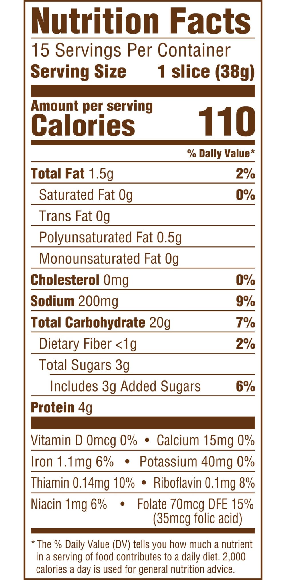 Ingredients: ENRICHED WHEAT FLOUR [FLOUR, MALTED BARLEY FLOUR, REDUCED IRON, NIACIN, THIAMIN MONONITRATE (VITAMIN B1), RIBOFLAVIN (VITAMIN B2), FOLIC ACID], WATER, SUGAR, YEAST, WHEAT GLUTEN, VEGETABLE OIL (SOYBEAN), BUTTER [CREAM, SALT], SEA SALT, POTATO FLAKES, CONTAINS 0.5% OR LESS OF EACH OF THE FOLLOWING: [NATURAL FLAVORS, CULTURED WHEAT FLOUR, SOY LECITHIN, CORN FLOUR, NONFAT MILK, CITRIC ACID, SPICE COLORING, ANNATTO TURMERIC (COLOR), SALT], . Contains: CONTAINS MILK, SOY, WHEAT.