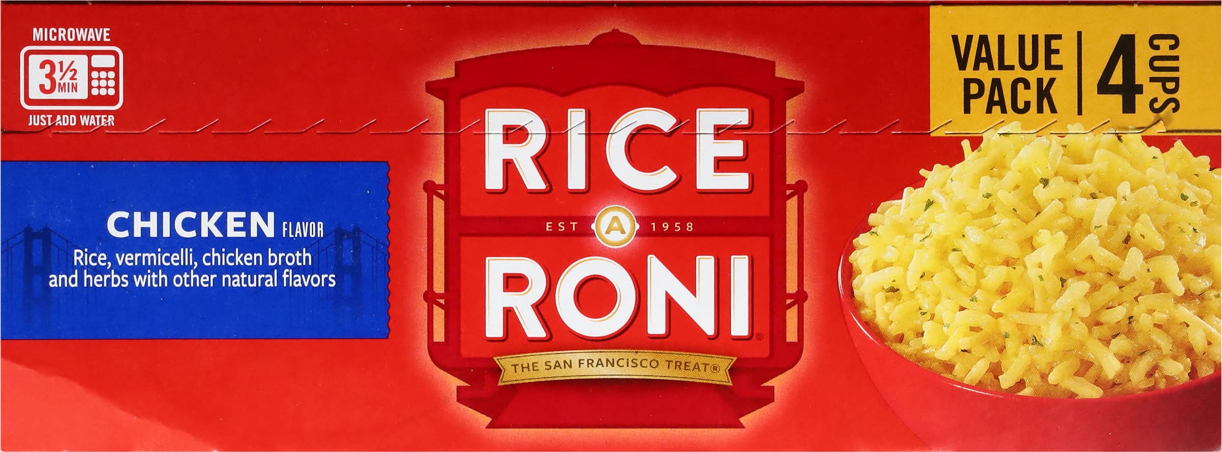Our Rice-A-Roni products combine rice, pasta and the perfect mix of seasonings to create delicious, family pleasing side dishes and main dish recipes. • Flavor: Chicken • Pack size: 4