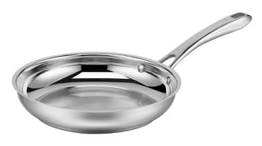 The Classic Stainless 10-Inch Skillet from Cuisinart is the perfect addition to any kitchen. Made from stainless steel, this ten-inch skillet features an open design with flared sides that makes frying, mixing, tossing and turning food easy. Great for anything from searing meat, sauteing veggies to cooking eggs and pancakes, this stainless steel fry pan has a tapered rim for easier serving, while the riveted handle provides a firm and easy grip while cooking. Cuisinart: From our state-of-the-art kitchen products to the moments and meals you create with them — when you bring more joy to the heart of your home, everything’s A Work of Cuisinart. • Color: Stainless steel • Size: 10 in