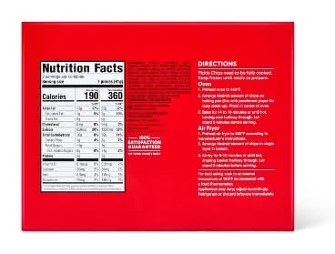 Directions: pickle chips need to be fully cooked. keep frozen until ready to prepare. oven 1. preheat oven to 450f. 2. arrange desired amount of chips on baking pan (line with parchement paper for easy cleanup). place in center of oven. 3. bake for 14 to 16 minutes or until hot, turning over halfway through. let stand 2 minutes before serving. air fryer 1. preheat air fryer to 400°f according to manufacturer’s instructions. 2. arrange desired amount of chips in single layer in basket. 3. air-fry for 9 to 10 minutes or until hot, shaking basket halfway through. let stand 2 minutes before serving. for food safety, cook to an internal temperature of 165f as measured with a food thermometer. appliances may vary; adjust accordingly. refrigerate or discard leftovers immediately.