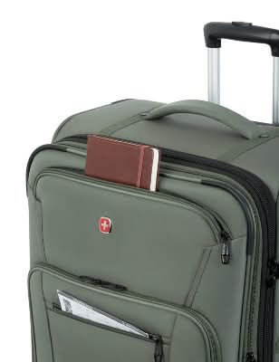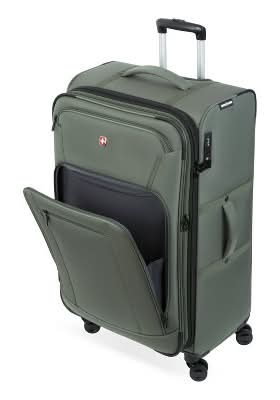 Benefit from the remarkable value and peace of mind that the SWISSGEAR 7070 Large Expandable Spinner offers. Rarely a collection comes across with such a long list of desirable mobility, convenience and organizational features. Coupling a light yet sturdy frame with 8 spinner wheels, and pulled by either reinforced, padded handles or a push-button telescopic handle, this checked bag will glide through airport terminals, never slowing you down. Meanwhile, know that your belongings will stay in place in its expandable interior, pressed in place by an adjustable clothes compression panel, while a protective, flush mounted and TSA-approved combination lock controls access. And, when last-minute items galore, this bag shines, with a trio of zippered front pockets, plus a large interior zippered flat pocket, so you can bring back with you more than just the memories!