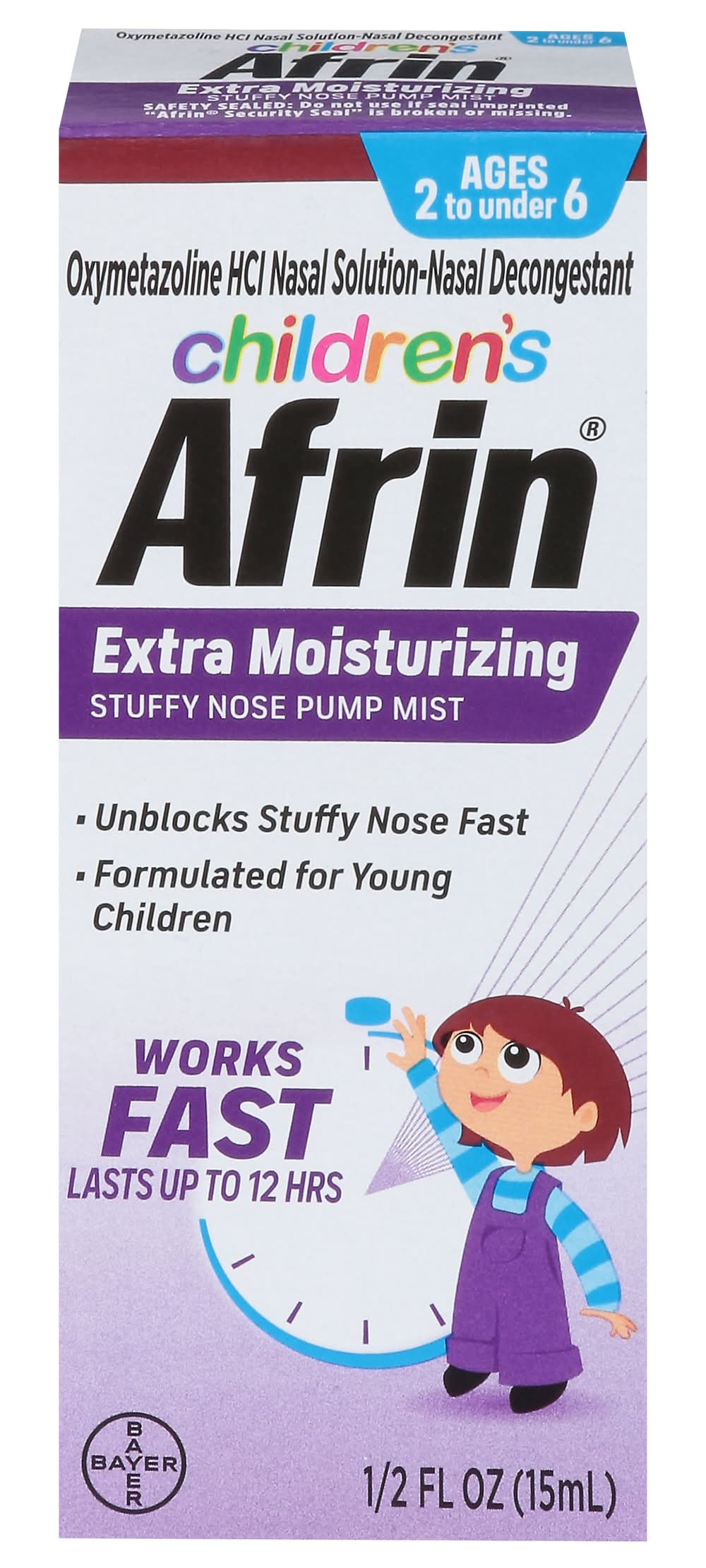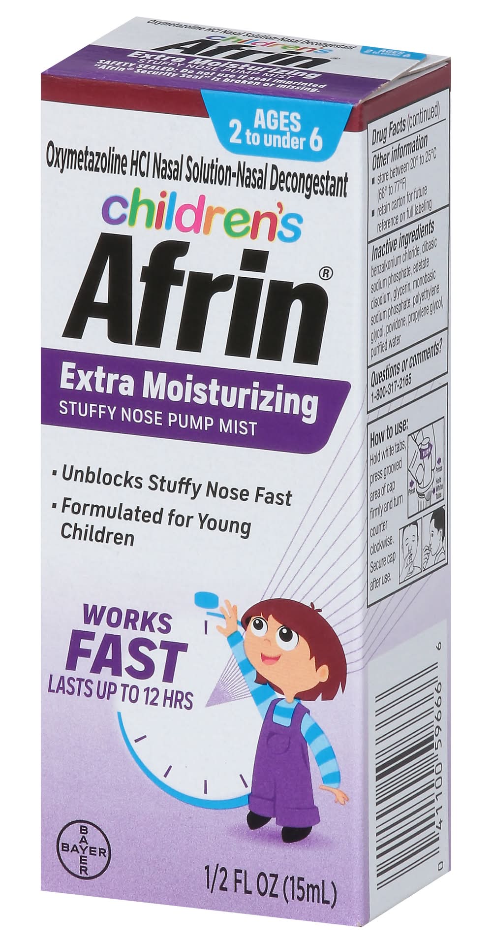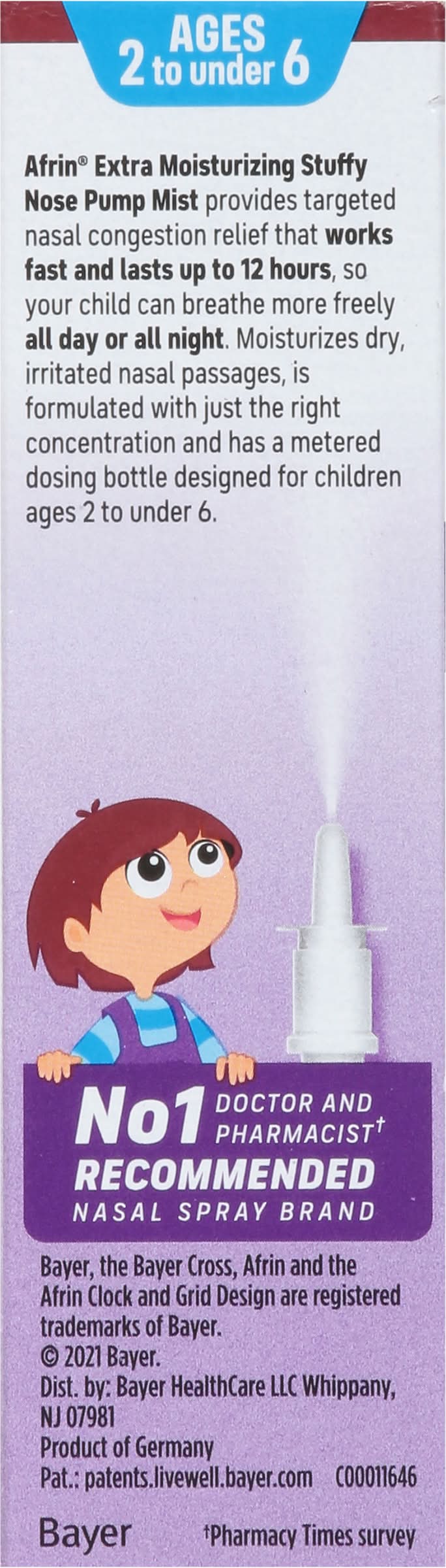 Directions: to use: shake well before use. hold white tabs, press grooved area of cap firmly and turn counter clockwise. before using the first time, prime metered pump by depressing pump firmly up to 10 times. to spray, hold bottle with thumb at base and nozzle between first and second fingers. without tilting head, insert nozzle into nostril. fully depress rim with a firm, even stroke. wipe nozzle clean after use. secure cap after use. how to use: hold white tabs, press grooved area of cap firmly and turn counter clockwise. secure cap after use. children 2 to under 6 years of age (with adult supervision): 2 or 3 sprays in each nostril not more often than every 10 to 12 hours. use only recommended amount. do not exceed 2 doses in any 24-hour period. children under 2 years of age: consult a doctor.