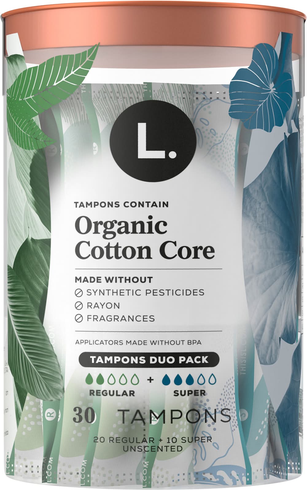L. Regular & Super Organic Cotton Core Tampons, Women (30 ct)