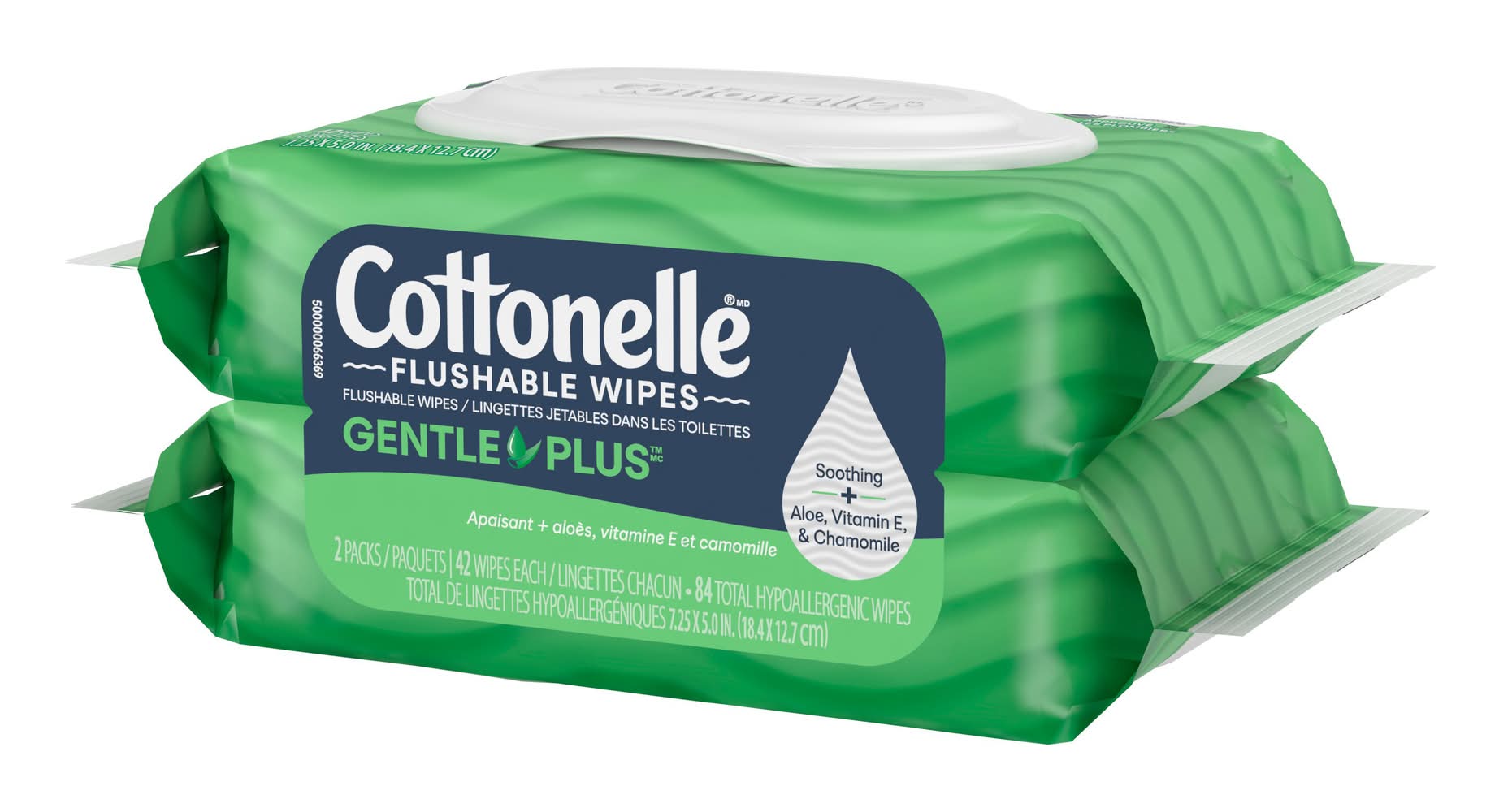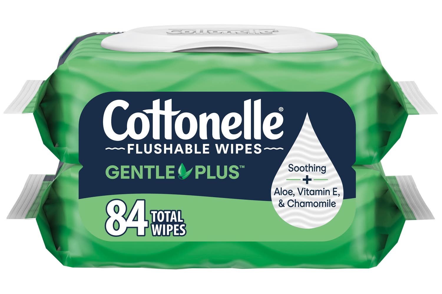 Cottonelle Aloe & Vitamin E Gentle Plus Flushable Adult Wet Wipes, 7.25x5 in (2 x 42 ct)