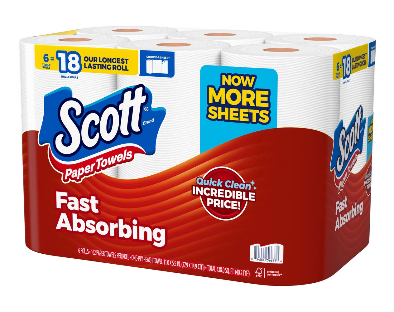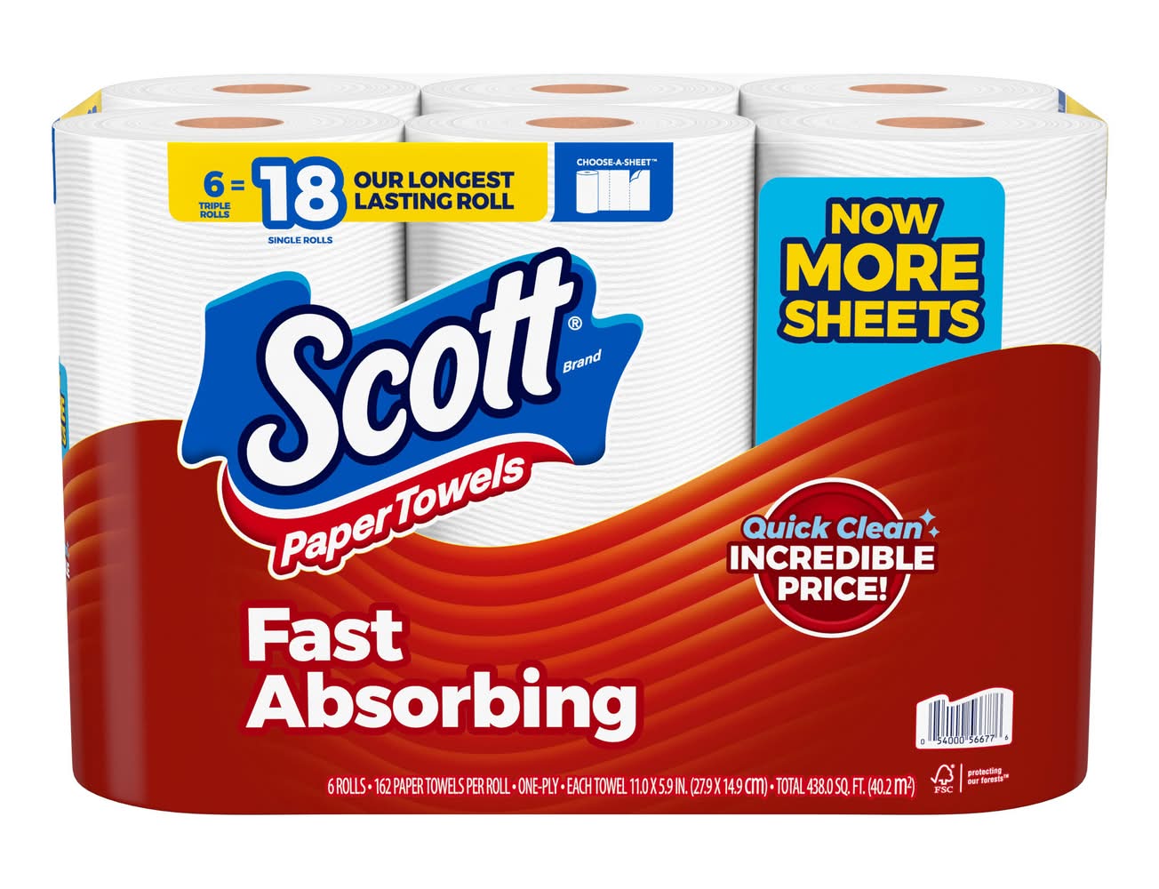 Scott Fast Absorbing Paper Towels, 11x5.9 in, White (6 ct)
