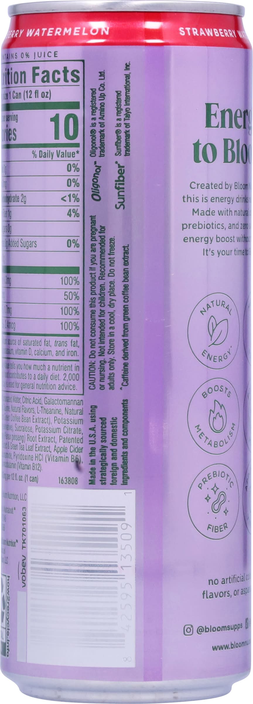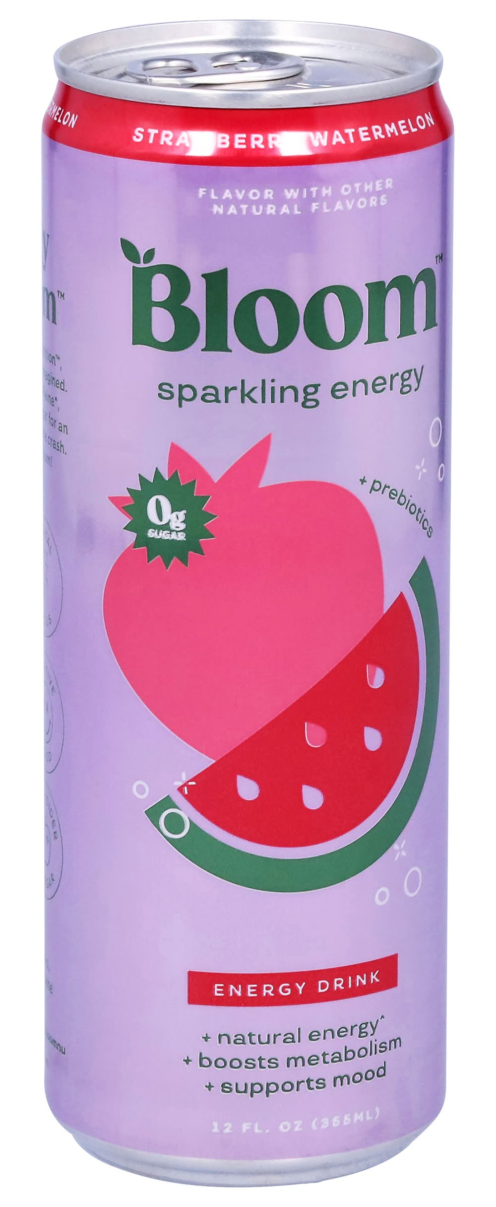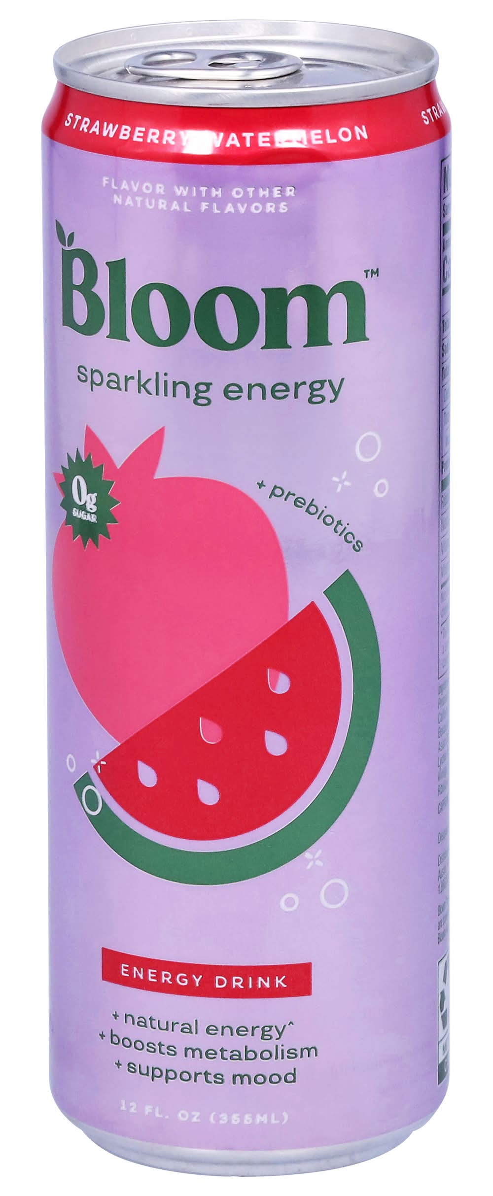 Bloom Prebiotics Sparkling Energy Drink, Strawberry Watermelon (12 fl oz)