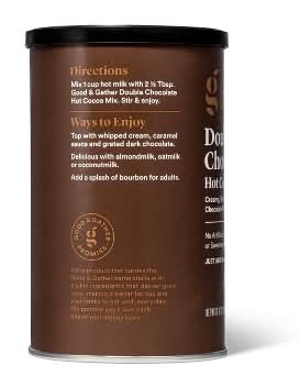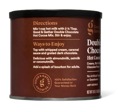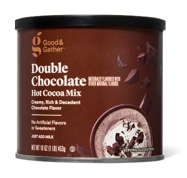 Enjoy a relaxing morning moment or afternoon break with a cup of this Double Chocolate Flavored Hot Cocoa Mix from Good & Gather. Just add milk to this hot cocoa mix for rich and creamy chocolate flavor you'll love any time of day. It’s also delicious with almond milk, oat milk or coconut milk. Top with whipped cream, caramel and grated dark chocolate for even more decadent flavor. Every product that carries the Good & Gather name starts with quality ingredients that deliver great taste, making it easier for you and your family to eat well every day. We promise you’ll love each bite or your money back. Flavor: Double chocolate