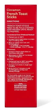 Enjoy a classic sweet treat in dunkable form in minutes with these Frozen Cinnamon French Toast Sticks from Market Pantry. Sweet French toast with added cinnamon takes stick form for a finger-food twist on the breakfast favorite. Delicious alone or dunked in syrup, you can reheat these sticks in the microwave, oven or air fryer for easy preparation. Flavor: Cinnamon