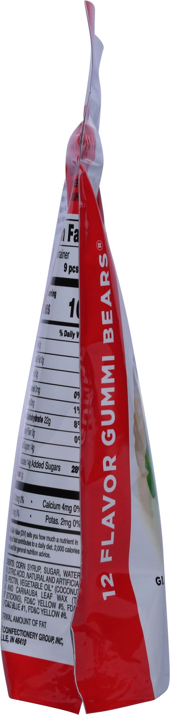 12 Flavor Gummi Bears: Cherry, Strawberry, mango, pineapple, lemon, orange, green apple, watermelon, pink grapefruit, lime, blue raspberry, grape. Fat free. Gluten free. Low sodium. World's best. Around here we refer to it as WB. It stands for what we believe. We believe you deserve the world's best gummies using the world's best ingredients made by the world's best people. It's just that simple. Open a bag and share in our passion. • Flavor: Assorted • Albanese Confectionery Group, Inc., Merrillville, IN, 46410