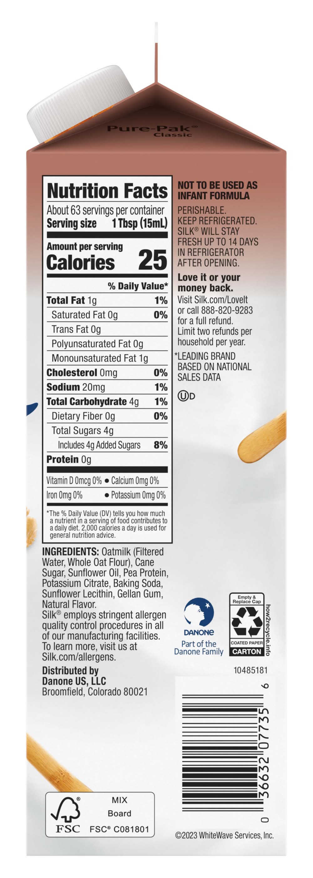Make your days more flavorful with Silk Maple Brown Sugar Oat Creamer. Not your average coffee creamer, this smooth and lusciously creamy dairy free creamer is a great way to start your day. Silk Maple Brown Sugar creamer is free of dairy, lactose, carrageenan and gluten, making it a great choice for any lifestyle. Plus, there are no artificial colors or flavors in this lactose free and gluten free creamer. Make a “me” moment by adding a splash of this Maple Brown Sugar flavored vegan creamer to smoothies, shakes, your morning coffee or anything that could use smooth and creamy oat goodness. At Silk, we believe in the power of plants to do a world of good, so people can enjoy good, feel good and do good. Silk non dairy creamer is the #1 brand of plant based creamers.* It’s also Non-GMO Project verified. Level up your coffee experience with Silk Oat Creamer. *Leading brand based on national sales data. • Number of servings: 63 • Packaging: Reusable