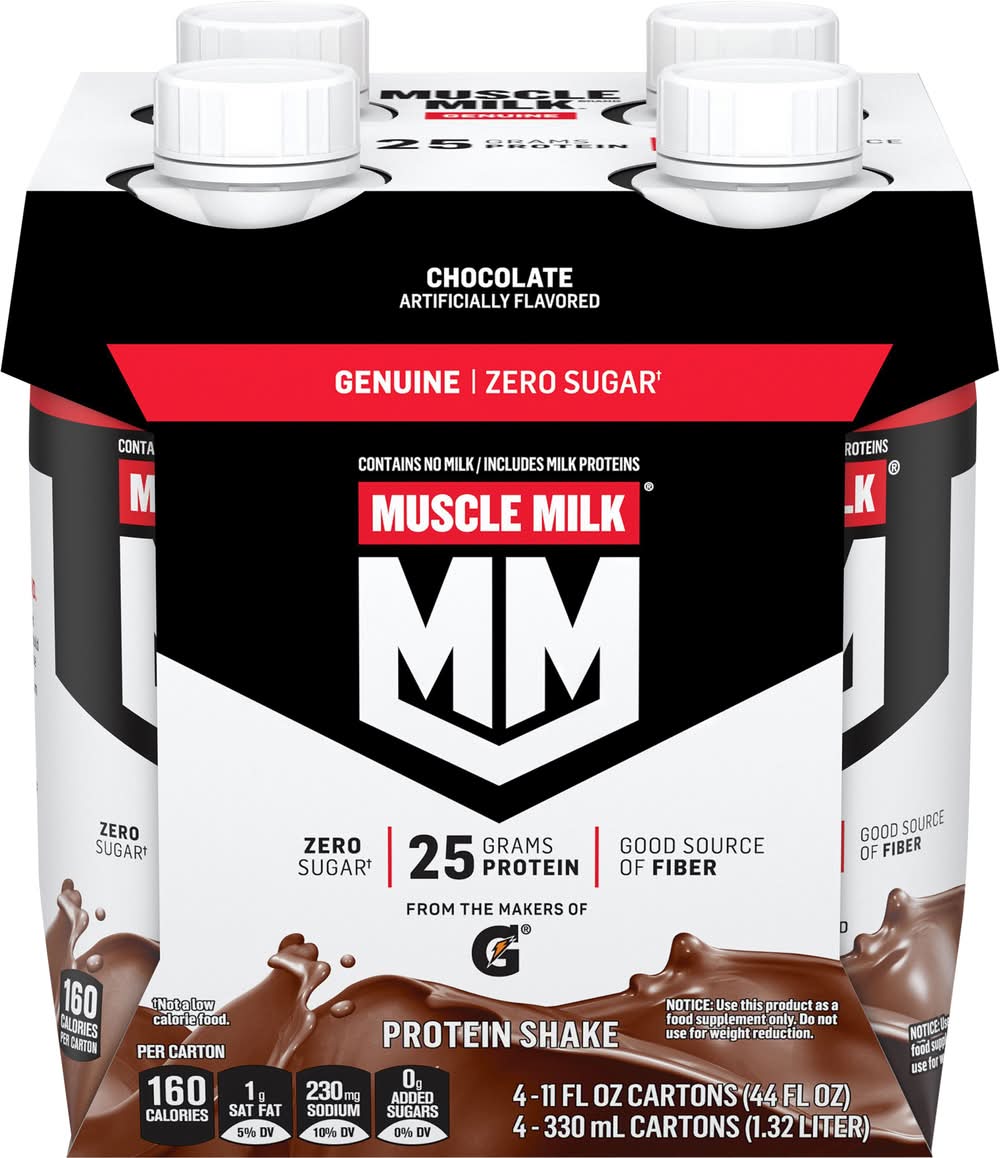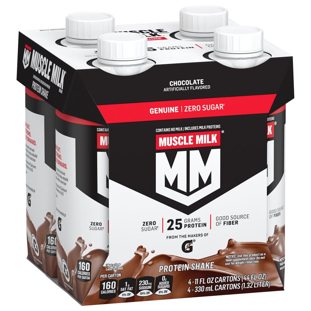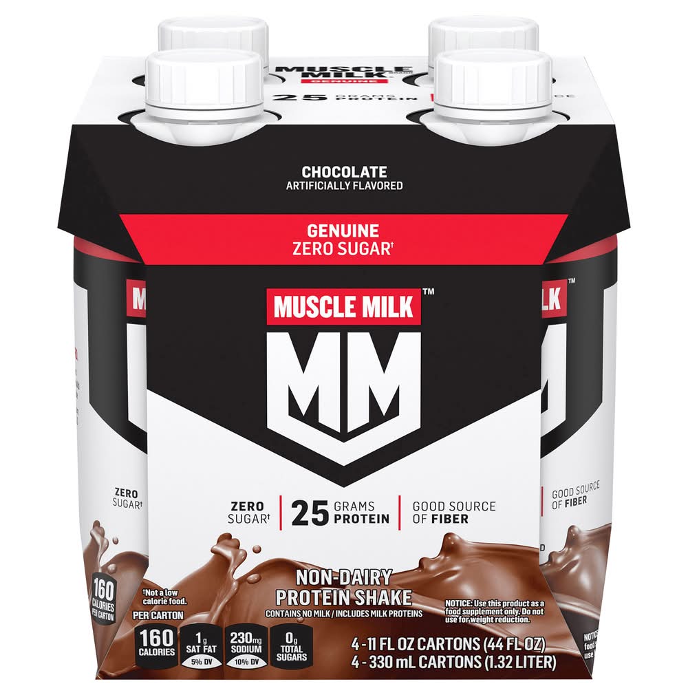 Muscle Milk Genuine Zero Sugar Protein Shake, Chocolate (4 x 11 fl oz)