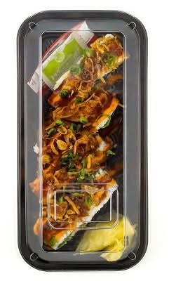 Mai Sushi's Shrimp Tempura Crunch Roll is a great go-to option when you're in need of a quick and easy lunch or dinner. This roll is made with breaded shrimp and cucumber rolled inside a layer of seaweed and seasoned white rice sprinkled with sesame seeds, then topped with BBQ Sauce, spicy mayo, fried shallots, and scallions. With tons of crunch inside and out, this roll lives up to its name. Packed in a reclosable container with a sauce well conveniently built into the lid, this sushi is perfect for a quick and easy grab-and-go meal. Mai Sushi is always made fresh daily using sustainably sourced seafood.