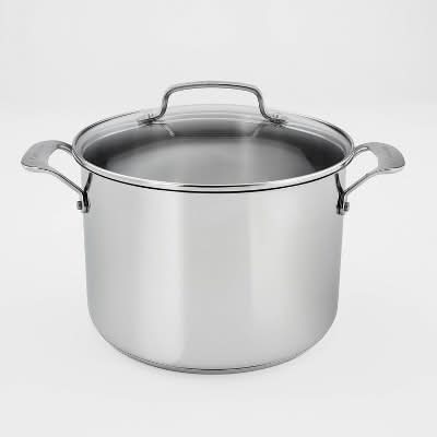 Perfect for preparing a variety of pastas, stews, stocks, soups and delicious vegetables and more. Premium stainless steel offers optimal cooking performance. Three-layer base heats quickly and spreads heat evenly, eliminating hot spots. Rim of cookware is tapered to make pouring clean and easy. Glass lid fits tight to lock in flavor, texture, and nutrients. Wide, easy-grip handles. Oven safe to 500˚F. Glass lid is oven safe to 350˚F. Cook on stovetop, in oven, or under broiler. Interior measurement markings for easy convenience. Freezer safe for easy food storage. Dishwasher Safe. Lifetime Warranty.