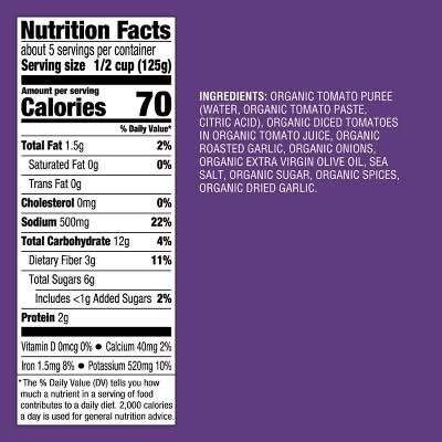 Bring hearty, savory flavor to your next homemade meal by complementing it with the Organic Roasted Garlic Pasta Sauce from Good & Gather. Made with tomatoes, extra virgin olive oil, sweet roasted garlic and traditional Italian spices, this roasted garlic sauce offers you a refined, delicious taste without overpowering the recipe. Whether served as a companion to your homemade spaghetti and meatball dinner or as an addition to your weekend-special pizza knots, this roasted garlic pasta sauce brings scrumptious taste to any meal. Every product that carries the Good & Gather name starts with quality ingredients that deliver great taste, making it easier for you and your family to eat well, every day. We promise you’ll love each bite, or your money back.