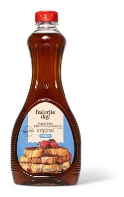 This Original Sugar-Free Syrup from Favorite Day lets you enjoy the sweetness of regular pancake syrup without the sugar. Featuring no sugar and reduced calories, this delicious syrup is perfect for topping pancakes and waffles, or you can try pouring some onto ice cream or mixing a bit into a latte. Best of all, the 24-ounce bottle gives you plenty of syrup to share with family and friends. *85% Fewer calories than regular syrup Favorite Day: A little bliss in every bite. Guaranteed to be a favorite or your money back.