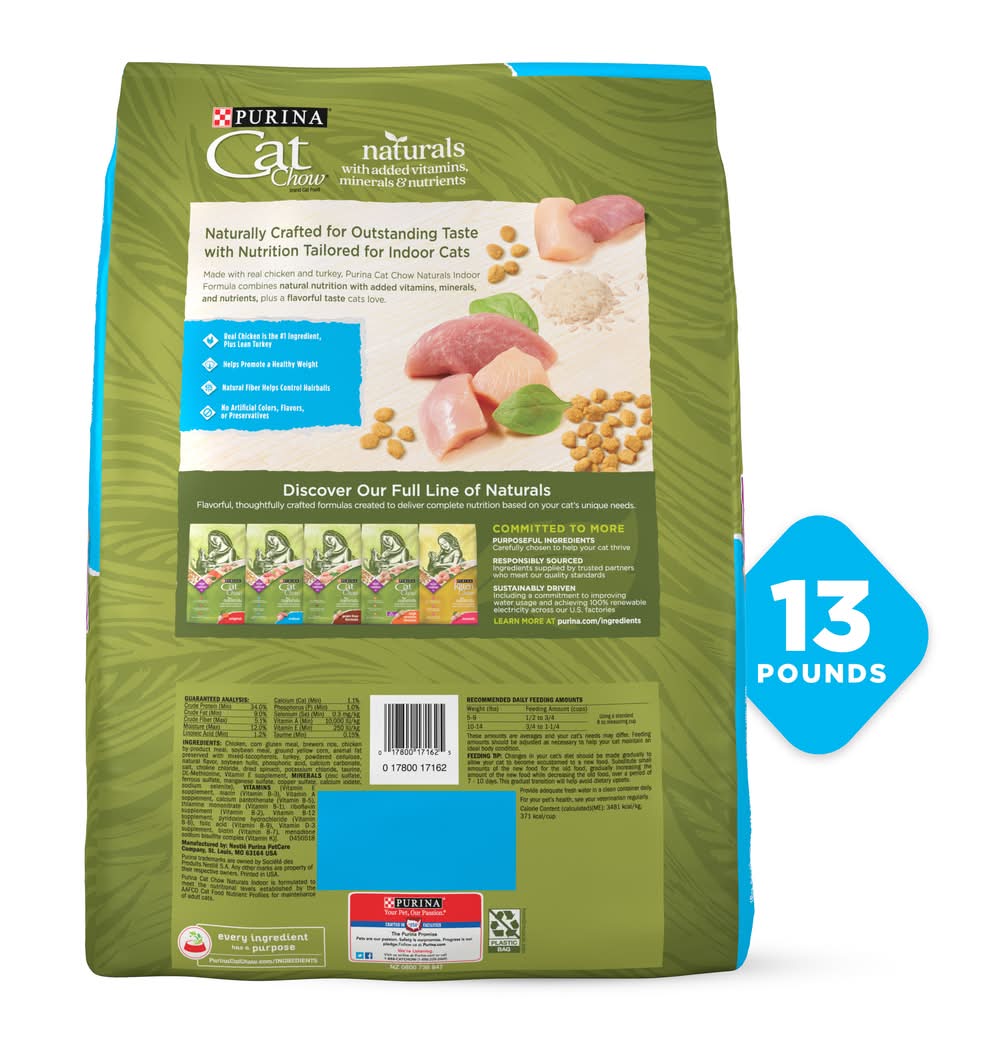 Purina Cat Chow Naturals Indoor Dry Cat Food, Chicken & Turkey (13 lbs)