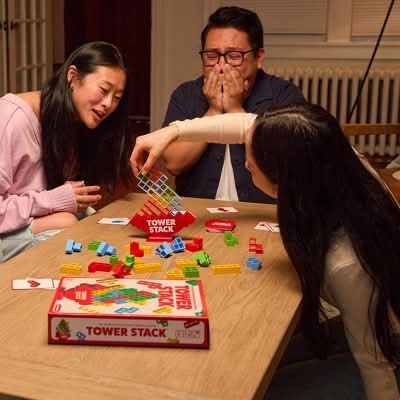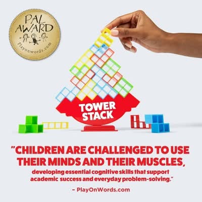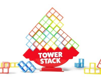 Ready. Set. Stack! Brought to you by Relatable and the TikTok famous game-loving couple Games4Two, Tower Stack is a head to head stacking challenge face-off! Take turns adding bricks to the rocking base — but be careful! As the stack piles up, so does the suspense! If the tower topples on your turn, you lose! It's easy to play, adrenaline-pumping fun! Includes: 44 cards, 32 blocks, 1 tower body, 1 tower stand, and instructions.