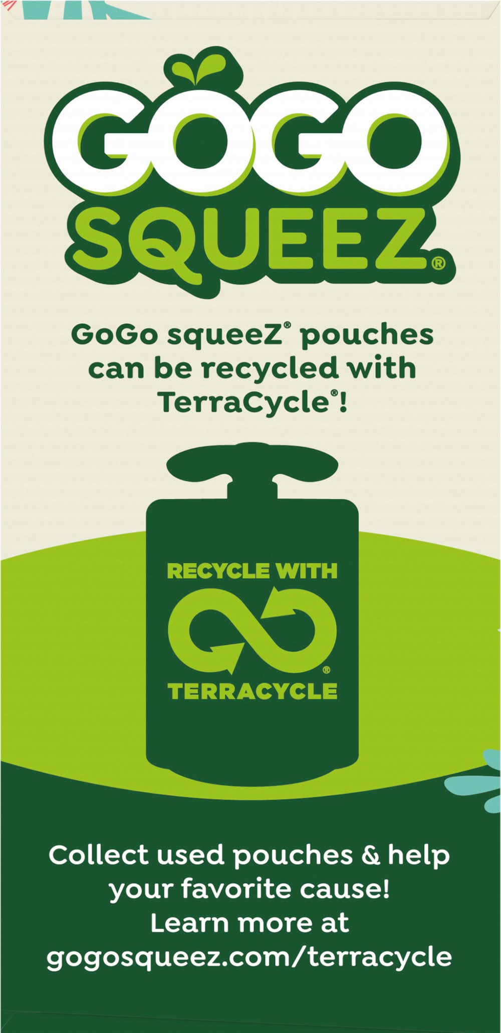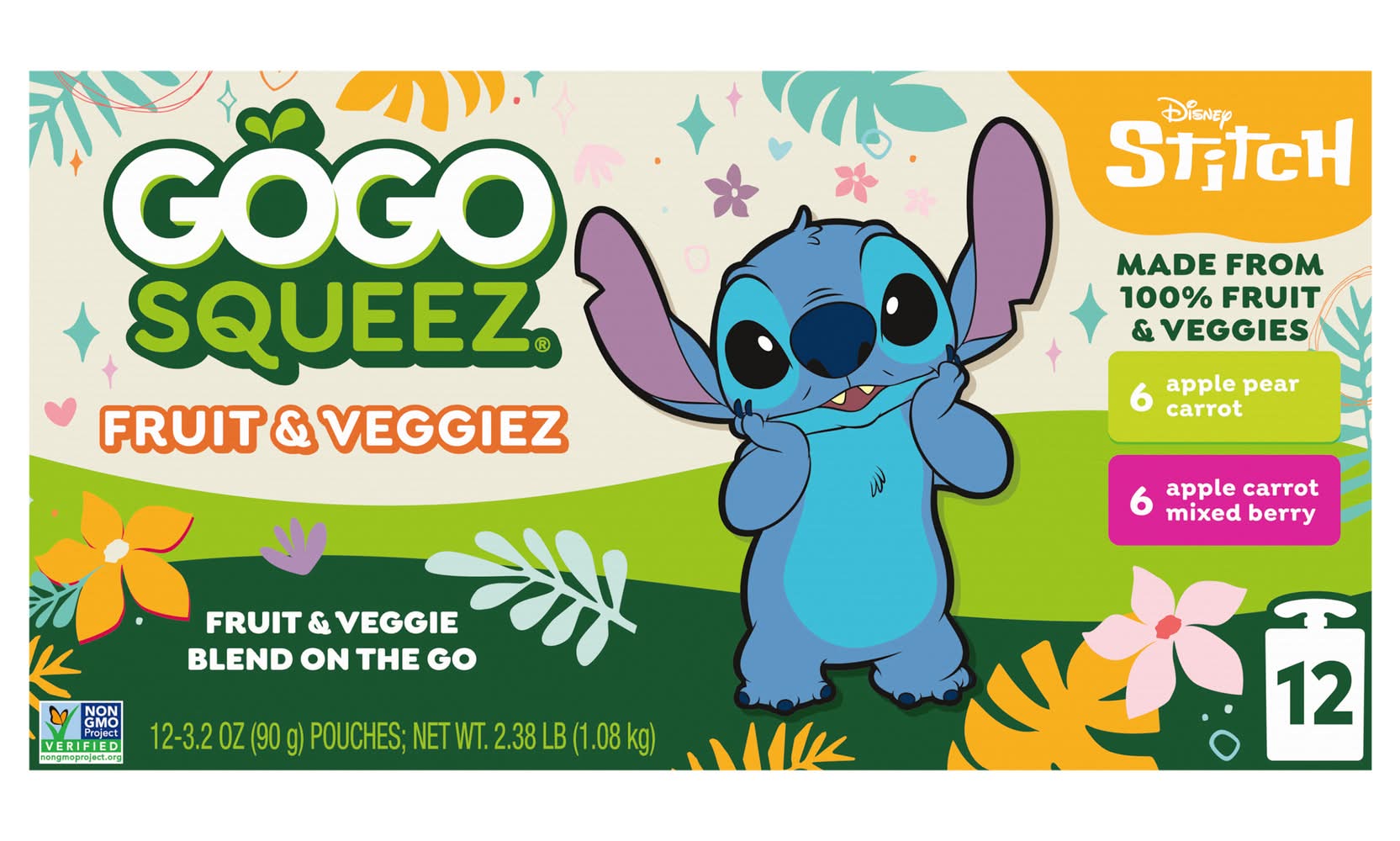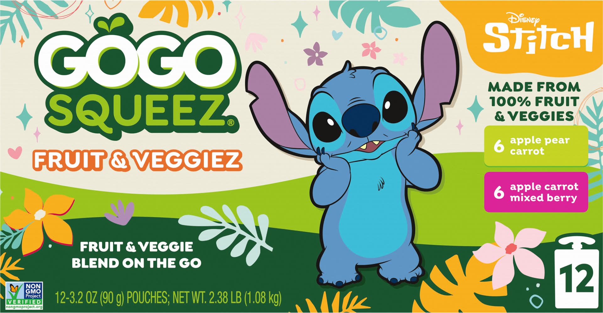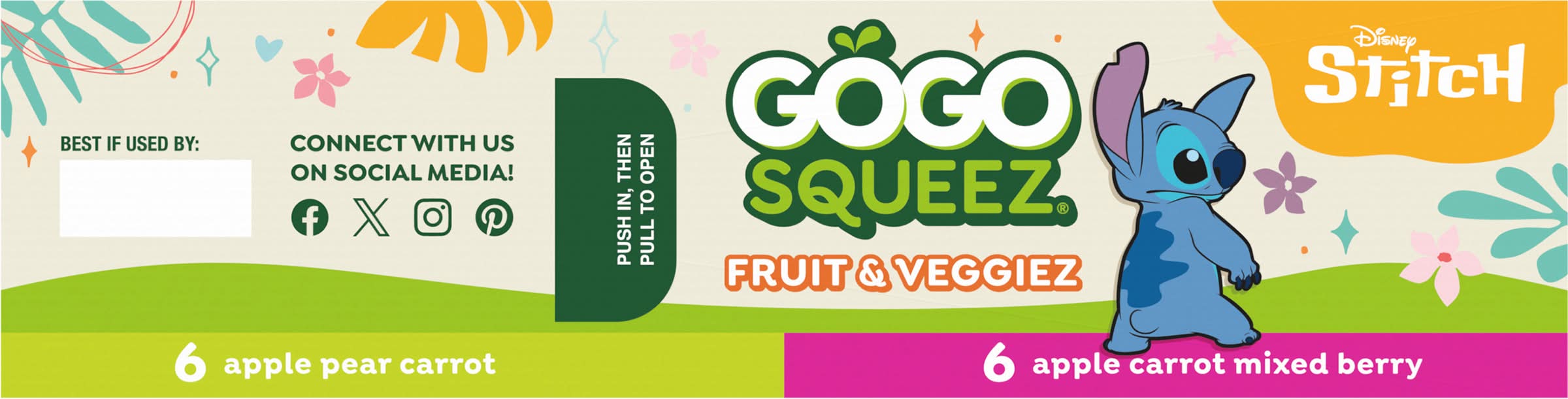 No Sugar Added* *Not a Low Calorie Food See Nutrition Facts for Sugars & Calorie Content 6 Boulder Berry Apple, Carrot, Mixed Berry 6 Zippin' Pear Apple, Pear, Carrot Eating a variety of colorful fruits and vegetables helps your body in different ways. GoGo squeeZ Fruit & VeggieZ has 1/3 cup of fruit and vegetables in every pouch. • Flavor: Assorted • Packaging: Reusable